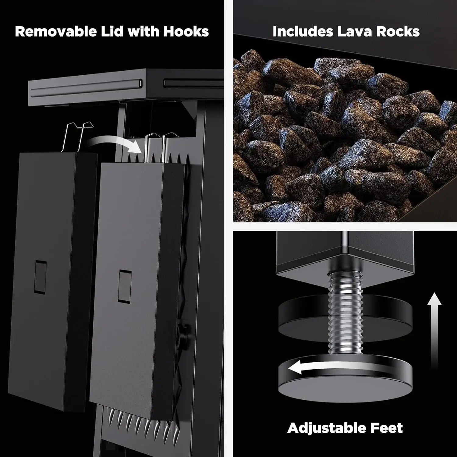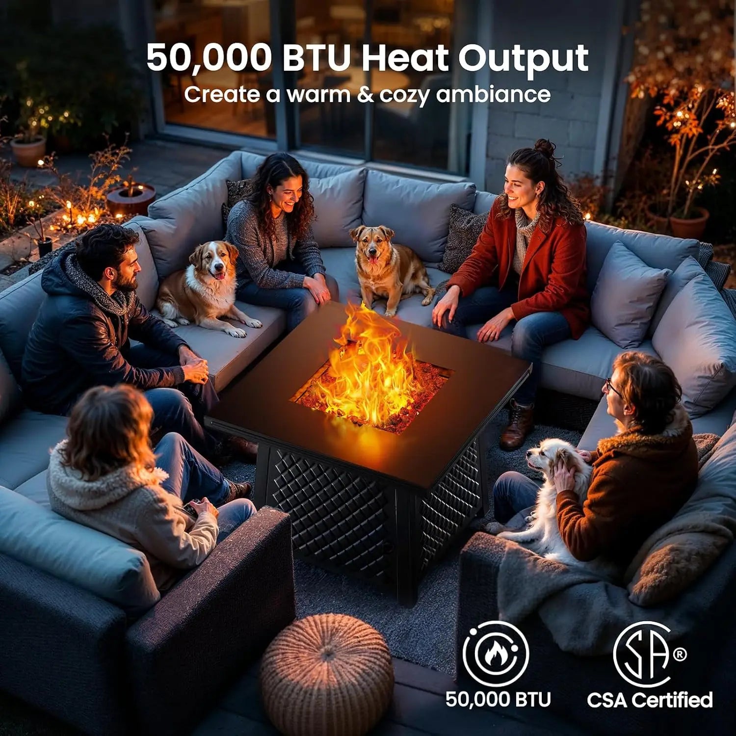 32 Inch Propane Fire Pits,50,000 BTU Gas Fire Pit Table for Outsides with Steel Lid & Lava Rock,2-in-1 Square Fire Table, Black