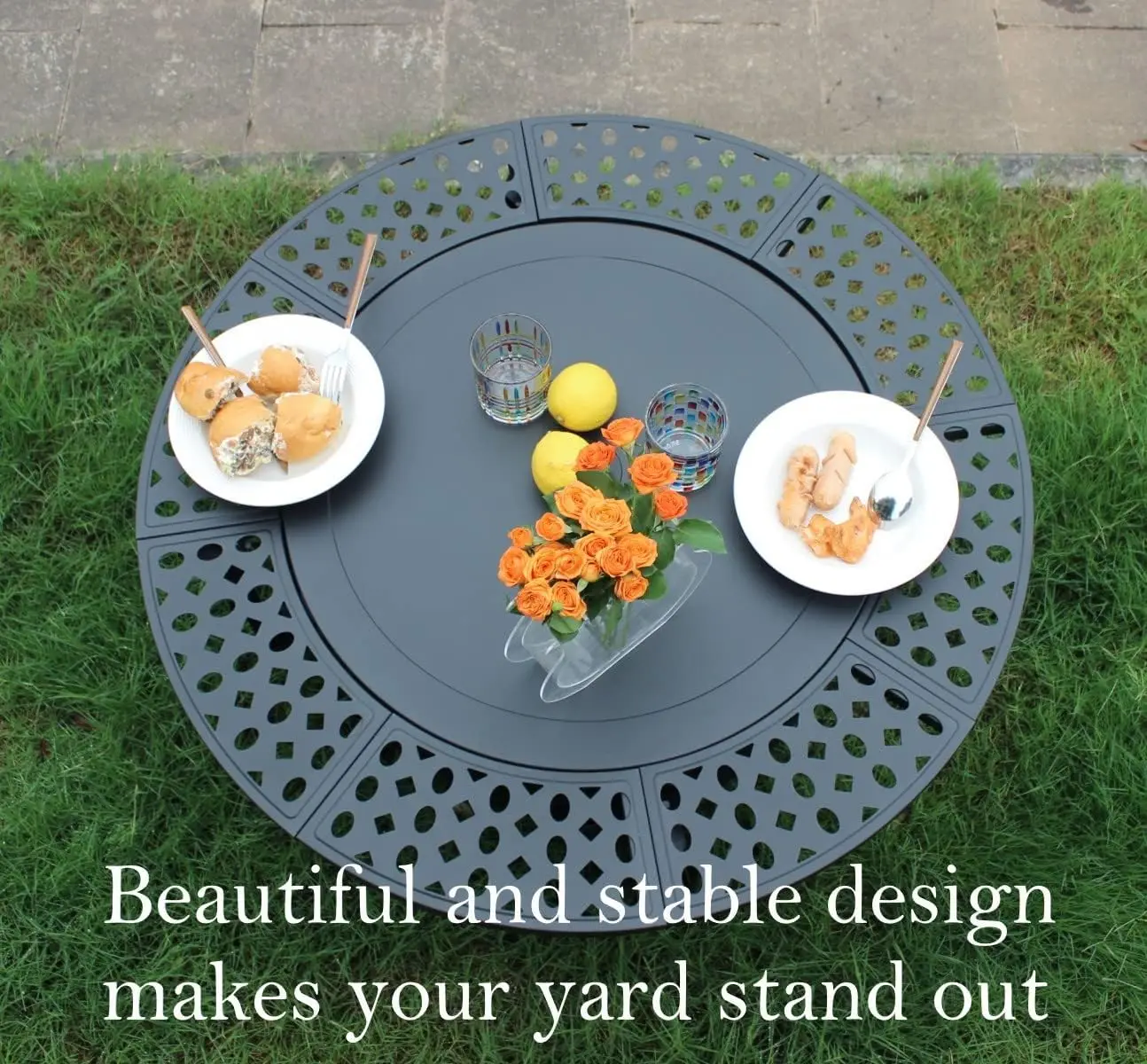 - [Beautiful & Humanized Design]OutVue fire pit table comes with 2 height-adjustable and 360° swivel grills which disassemble freely. You can barbecue, keep food warm or put pan to cook on them. The side of wood-burning fire pit is created with modern geometric cut-out design which catches firelight for creating fun shadows. The drilled design promotes airflow and keeps the fire strong. All sophisticated designs of the fire pits for outside are dedicated to the warmth and comfort for you.
