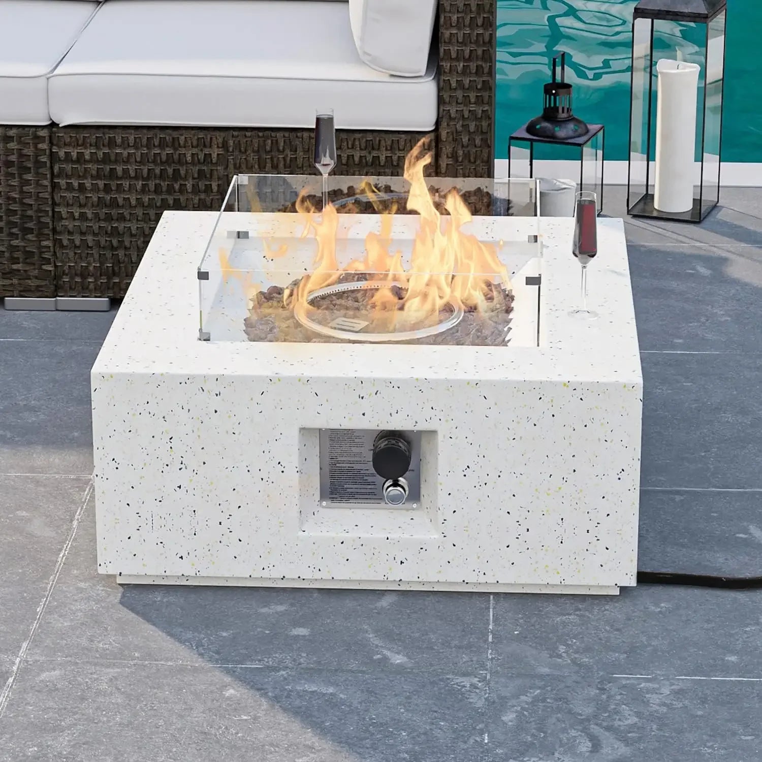 Wonderful Center: The white frosted concrete fire table is safe and reliable in use, it is definitely a great choice for your garden, backyard and pool to give you a comfortable experience to enjoy your leisure time!