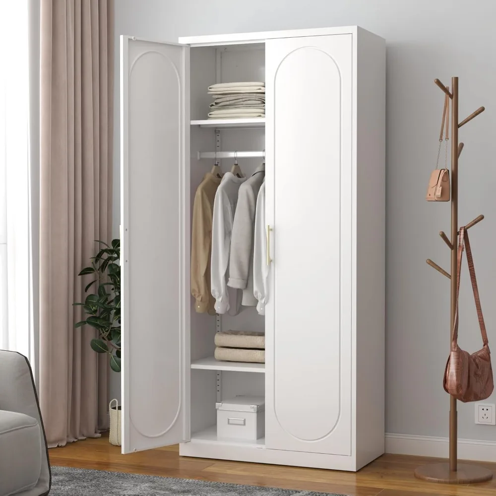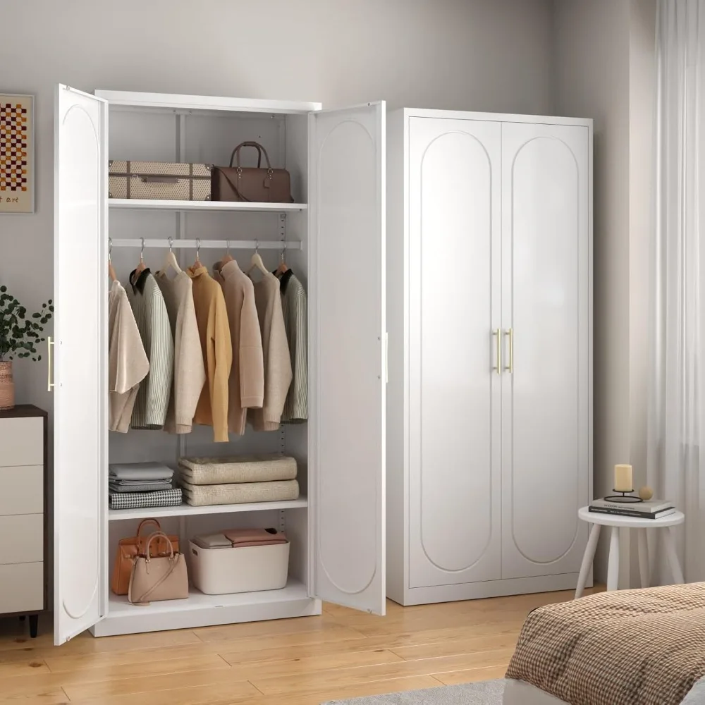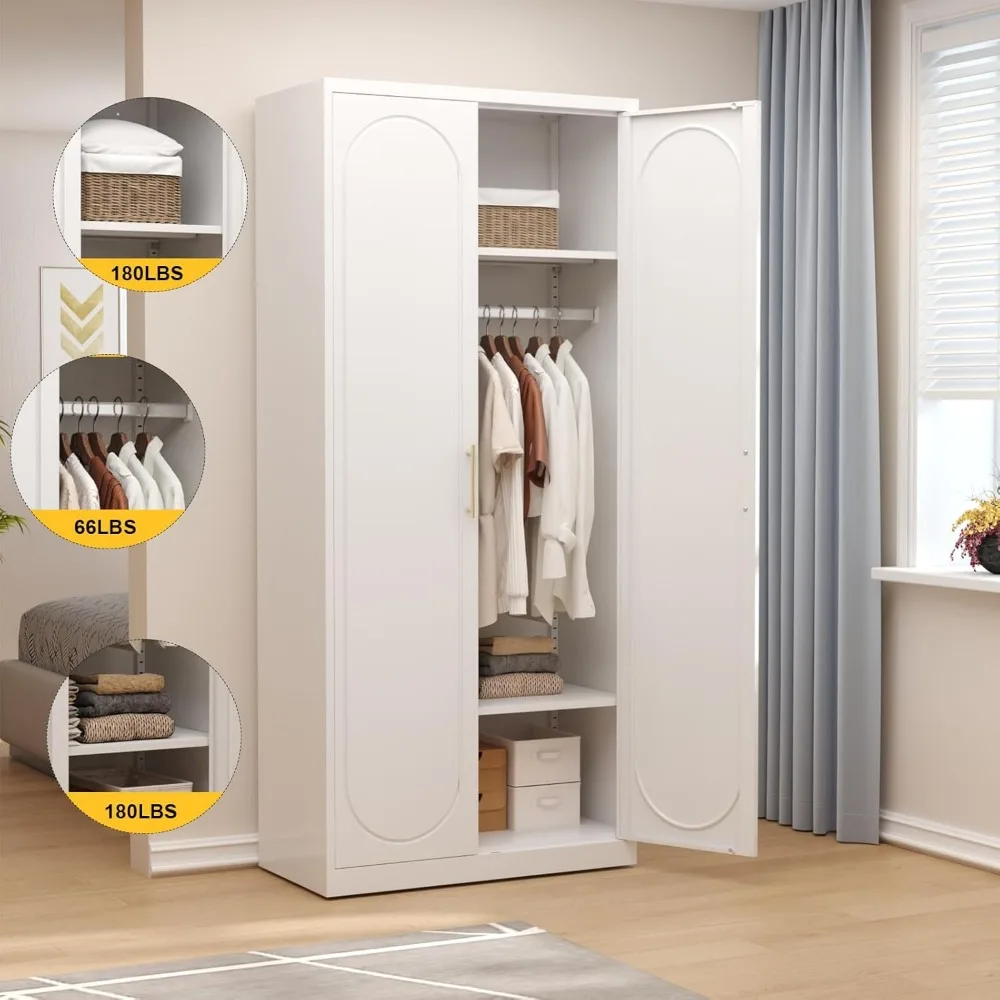 - 【Hanging Rod and Adjusting Shelves】The white wardrobe storage cabinet features adjustable shelves and clothes bars, allowing you to customize the hanging area and storage space freely according to your needs for clothes, shoes and other household and office supplies.